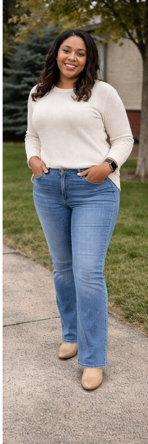 It gives a straight and narrow gal the appearance of an hourglass and it gives curvy gals a balanced figure. If you don't own Bootcut - grab these and give them a try! You will be blown away by how flattering they fit.